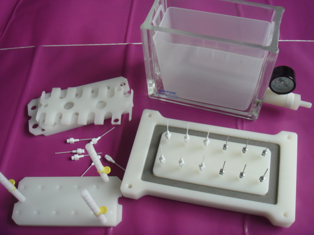◆特高分子聚丙烯制成的導(dǎo)流針、方便收集溶液,防交叉污染。玻璃缸防霧化真空槽設(shè)計,操作簡單快速。