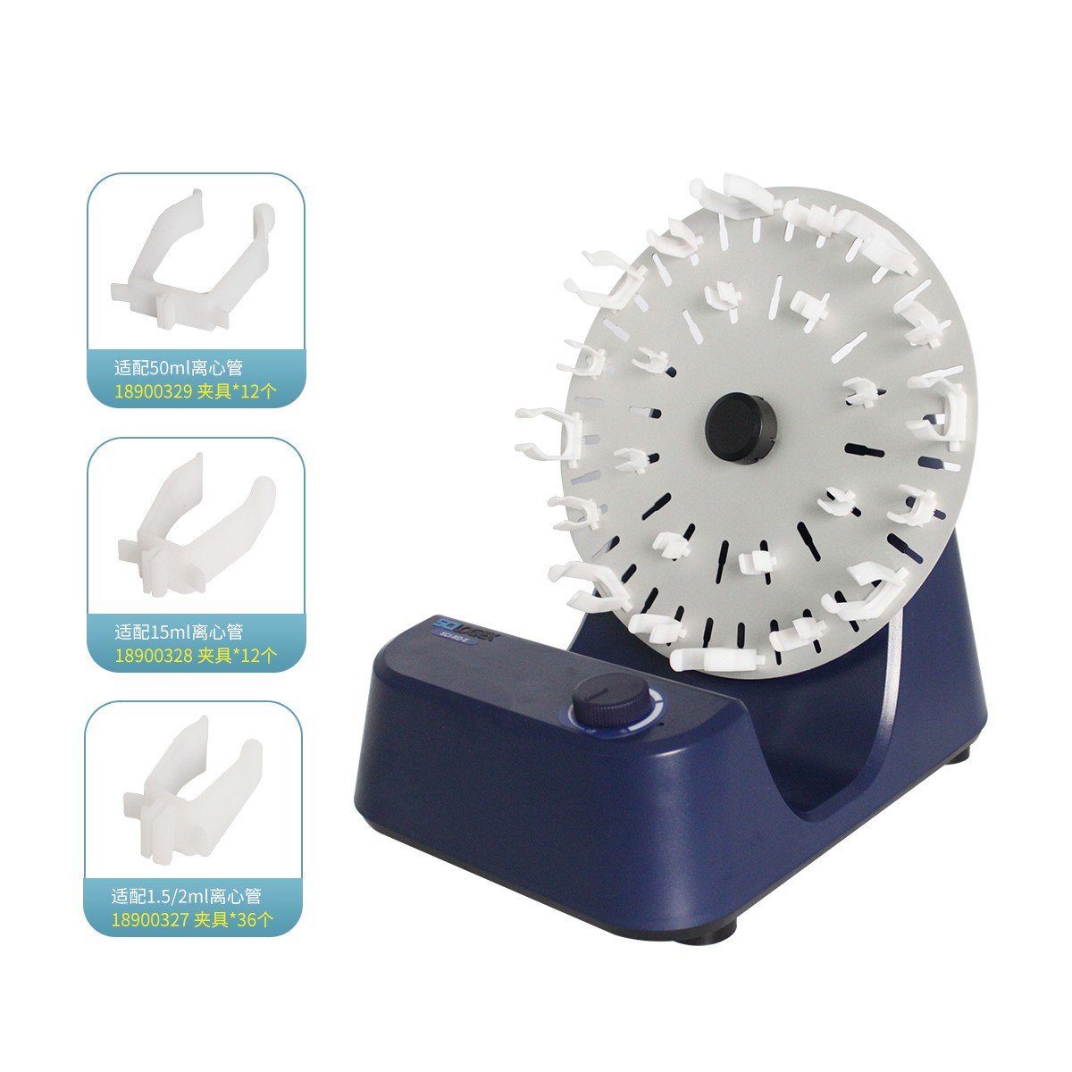 ▲ 多種離心管夾具可供選擇。適用于1.5mL,15mL,50mL離心管。